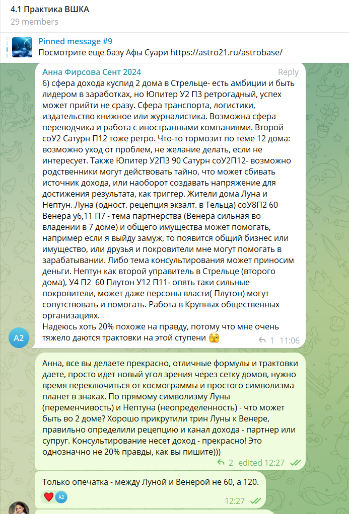 - объяснение сложного простыми словами, ознакомление с разными методиками и подходами в астрологии.